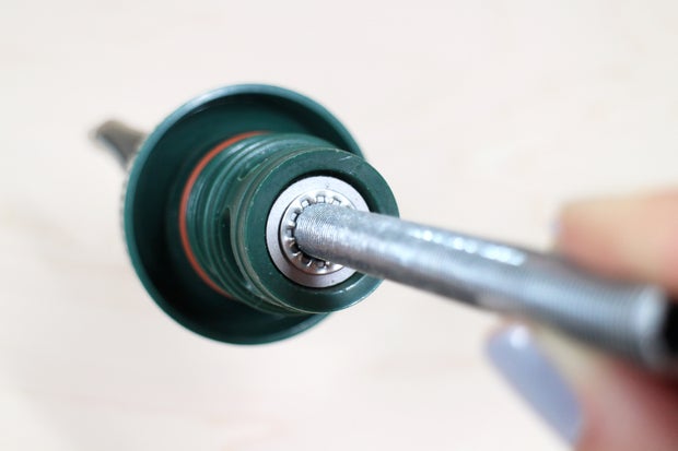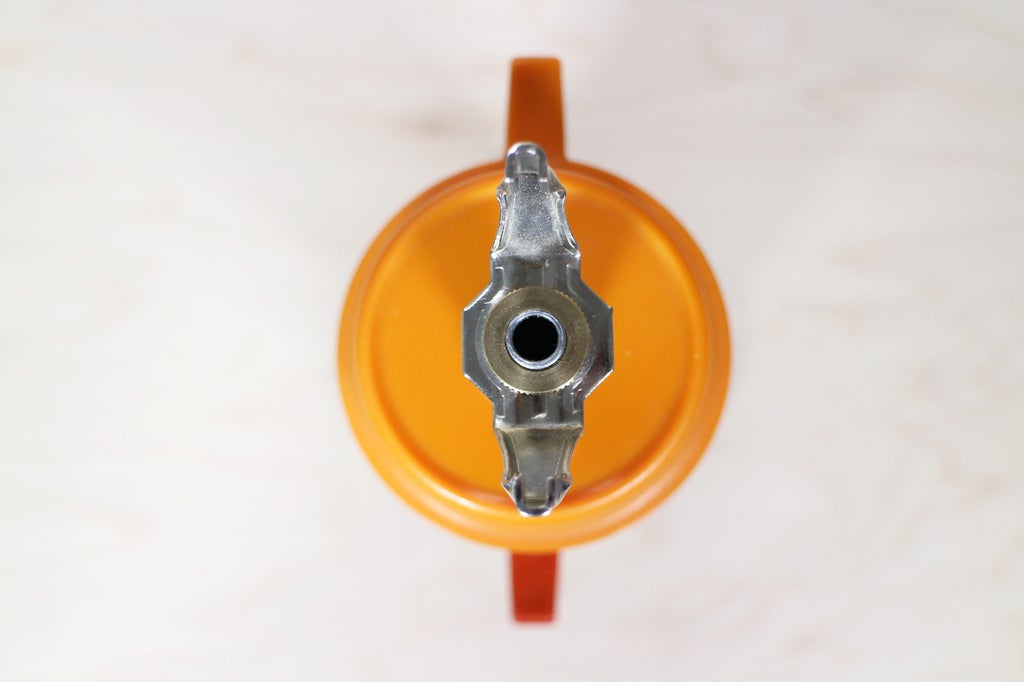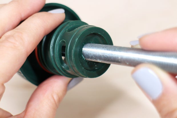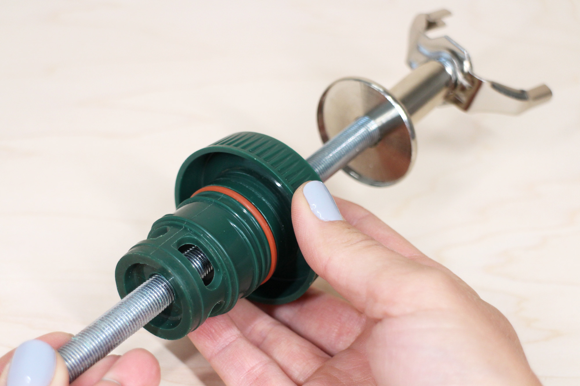 Chargez ensuite les tasses sur la tige filetée dans cet ordre, en complétant la pile avec le col en métal.