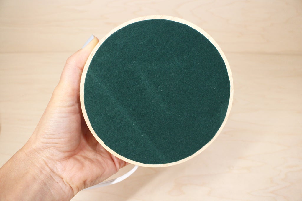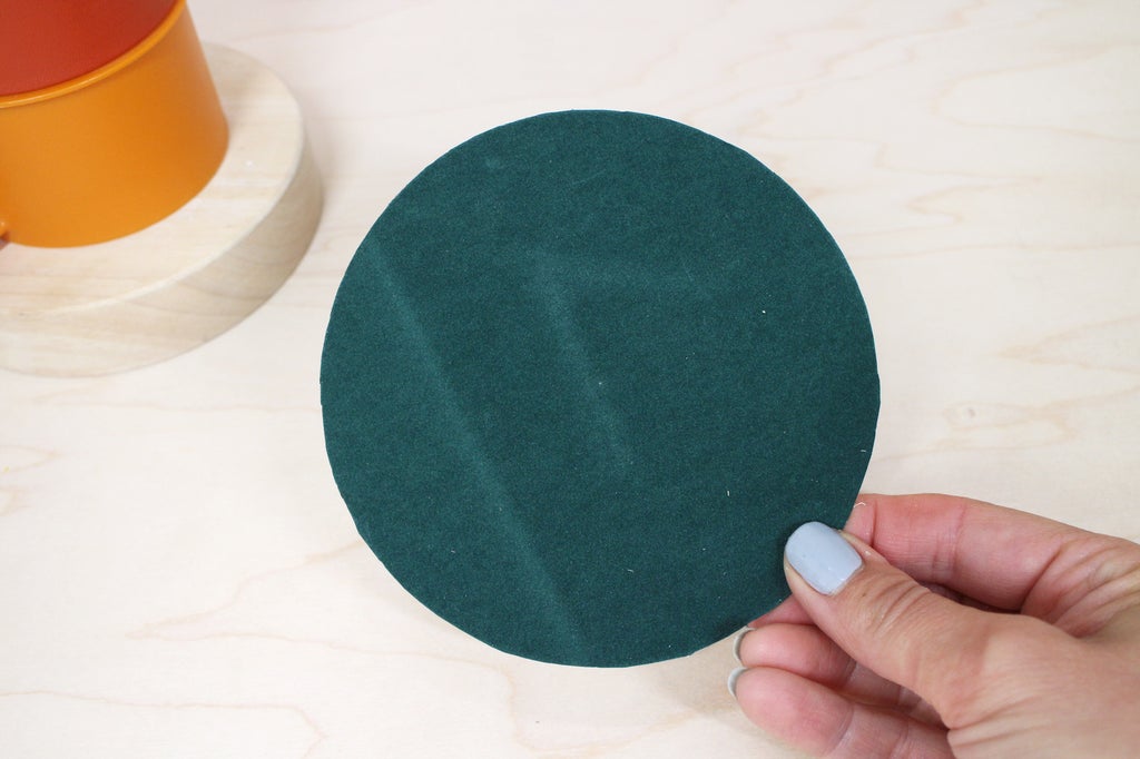 Si vous avez lu les instructions relatives à la lampe thermos, vous avez peut-être remarqué que j'ai fixé le feutre et que j'ai ensuite coupé l'excédent. Comme il s'agit d'une base de couleur plus claire, je veux m'assurer que le feutre de couleur foncée ne se voit pas du tout. Pour ce faire, nous allons découper un cercle de feutre légèrement plus petit que le diamètre de la base, puis le fixer.