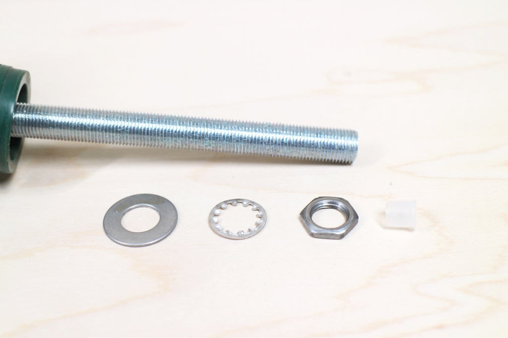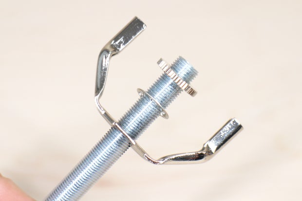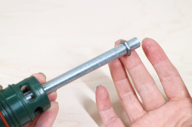 Ajoutez l'écrou, la rondelle de blocage et la rondelle plate à une extrémité de la tige filetée, comme illustré ci-dessus.