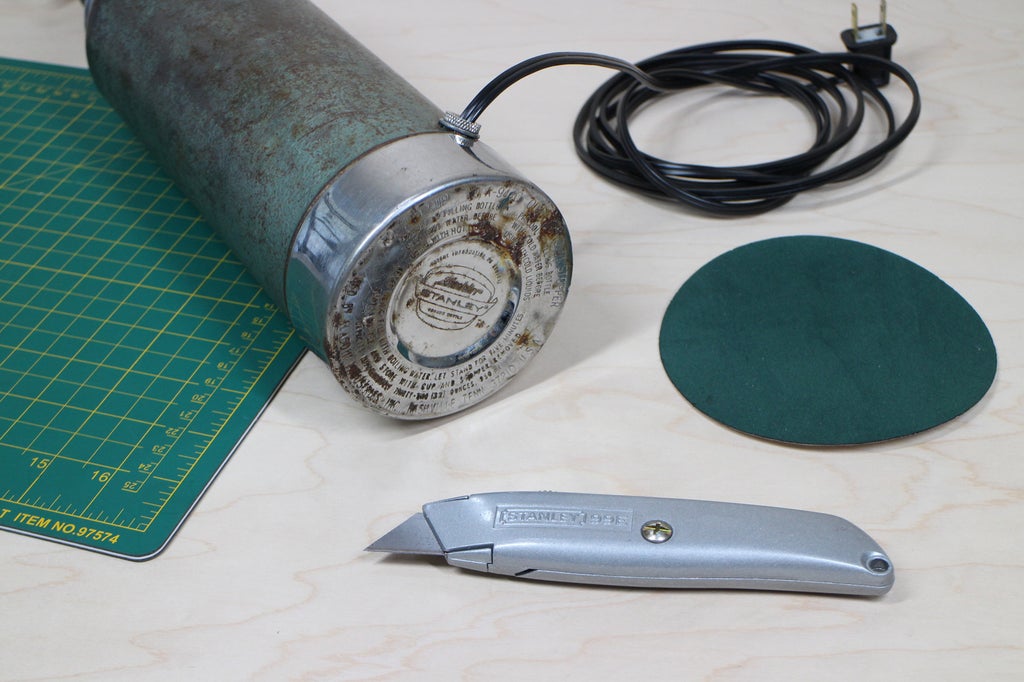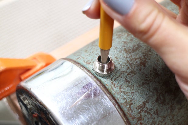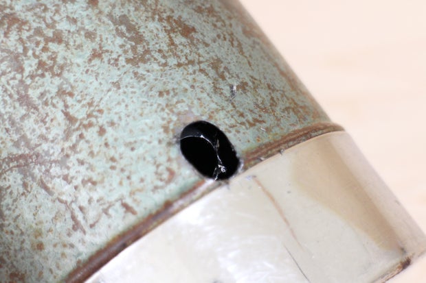 Et voilà ! Nous avons maintenant un trou lisse et sûr pour que le cordon sorte de la base de la thermos/lampe.