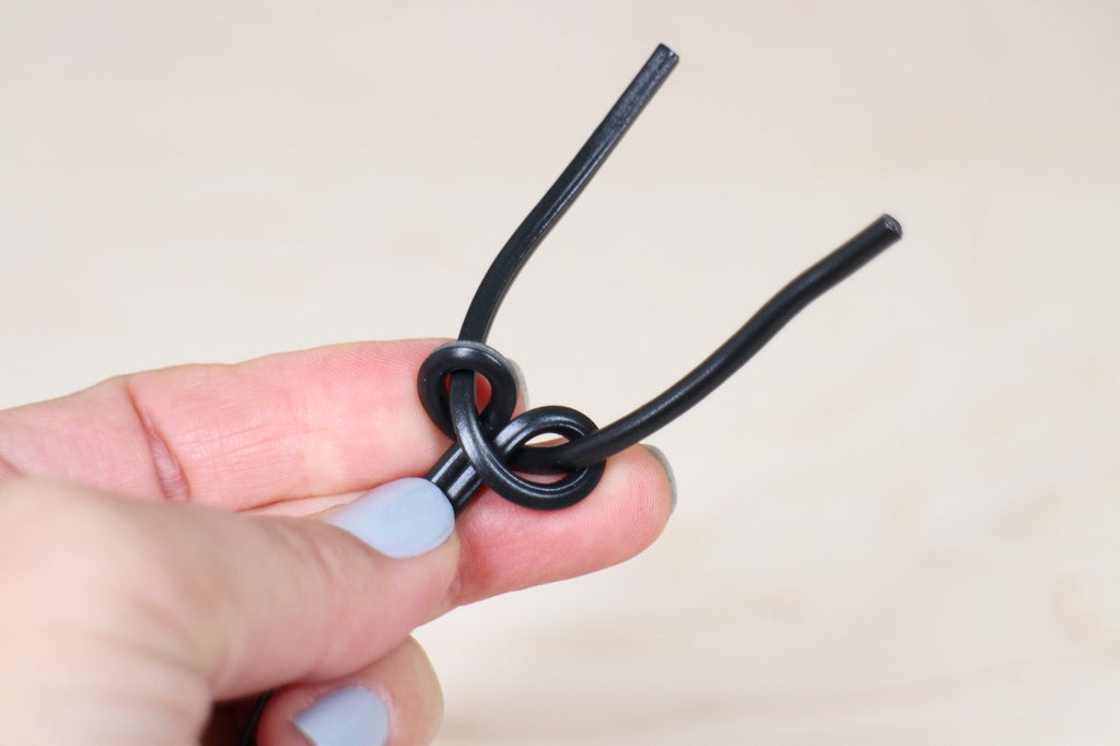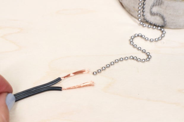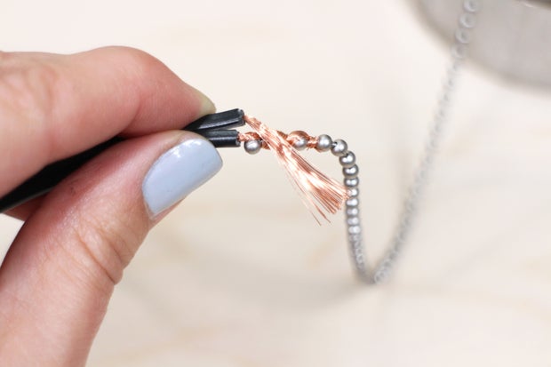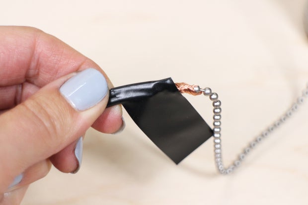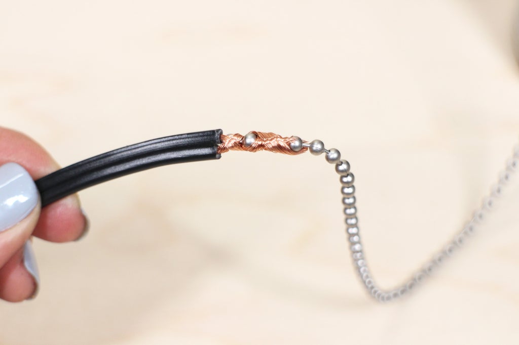 Enroulez un côté du fil autour de l'extrémité de la chaîne à boules, puis répétez l'opération pour l'autre côté, comme illustré.