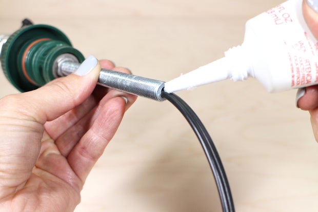 Pendant que vous y êtes, ajoutez la douille intérieure du cordon à l'extrémité de la tige. Cela permet de protéger le cordon contre tout contact avec un bord métallique tranchant.