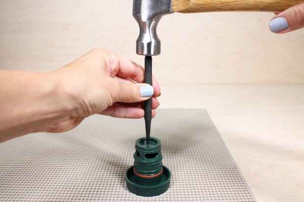 Placez un gobelet à l'envers sur le tapis de préhension, appuyez fermement avec votre main non dominante, et percez ! Répétez l'opération pour les autres gobelets.