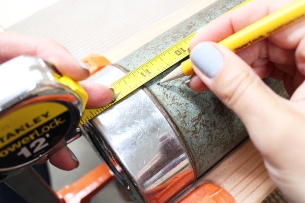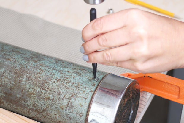 Terminez de percer la deuxième paroi métallique intérieure et utilisez la petite pince coupante pour couper les morceaux de métal pointus qui sont encore attachés.