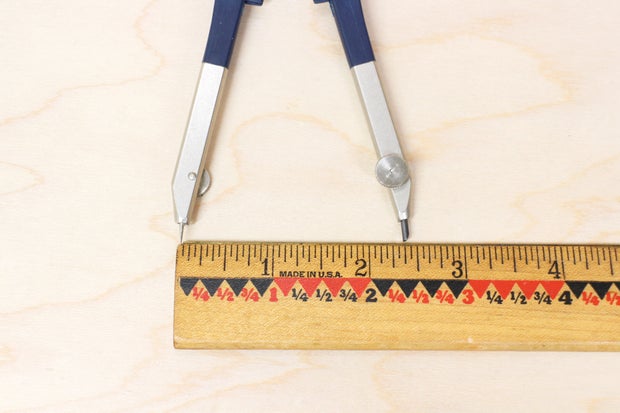 Pour ce faire, mesurez le diamètre de la base et réglez le compas de manière à ce qu'il soit légèrement inférieur à la moitié du diamètre (= rayon).