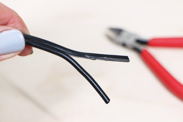 Utilisez la pince coupante pour couper la connexion chaîne à boules/fil/ruban - en veillant à faire une coupe perpendiculaire sur le cordon pour l'insérer dans la fiche Kwik. Puis, ajoutez le bouchon.